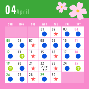 4月の営業日です。