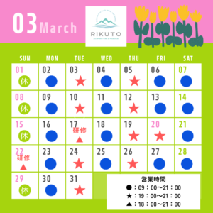 3月の営業日です。