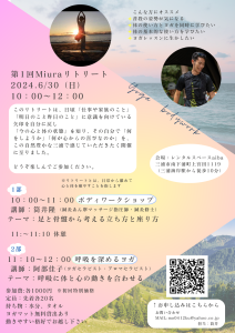 2024.6.30(Sun)レンタルスペースaiba様にてMiuraリトリートを開催しました。 約30名の方が参加して下さりました。 本当にありがとうございました。 次回の開催日程については、またご連絡致します。